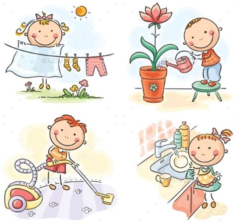 Kids Helping Their Parents With The Housework Stock Vector Art & More